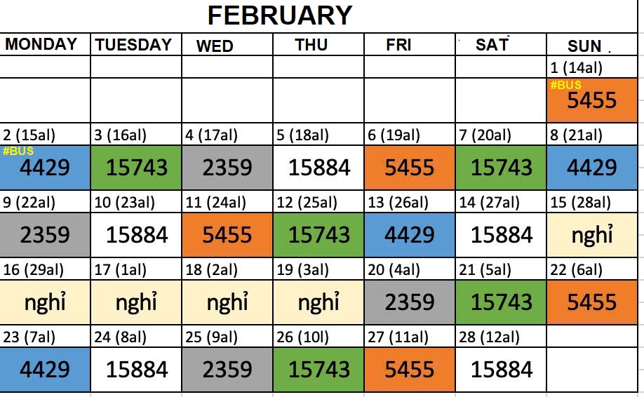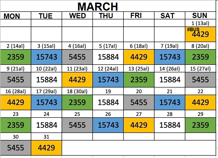 4. Bus schedule for February and March 2026